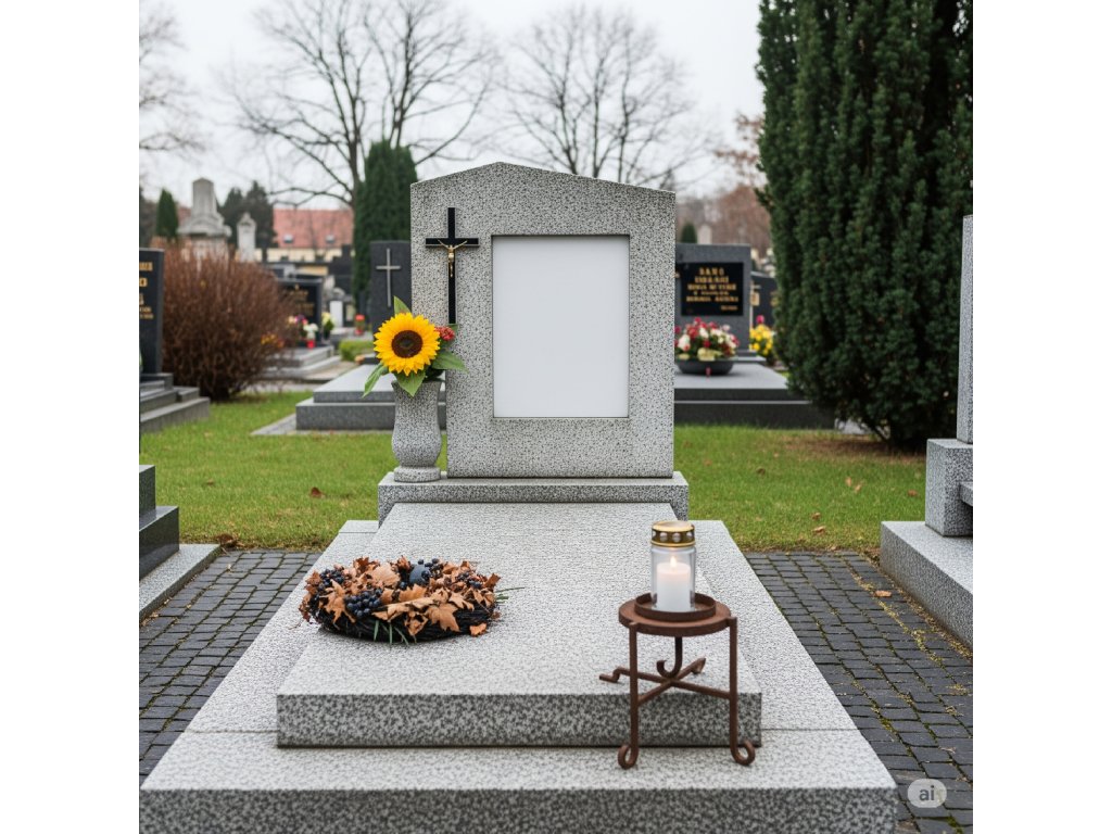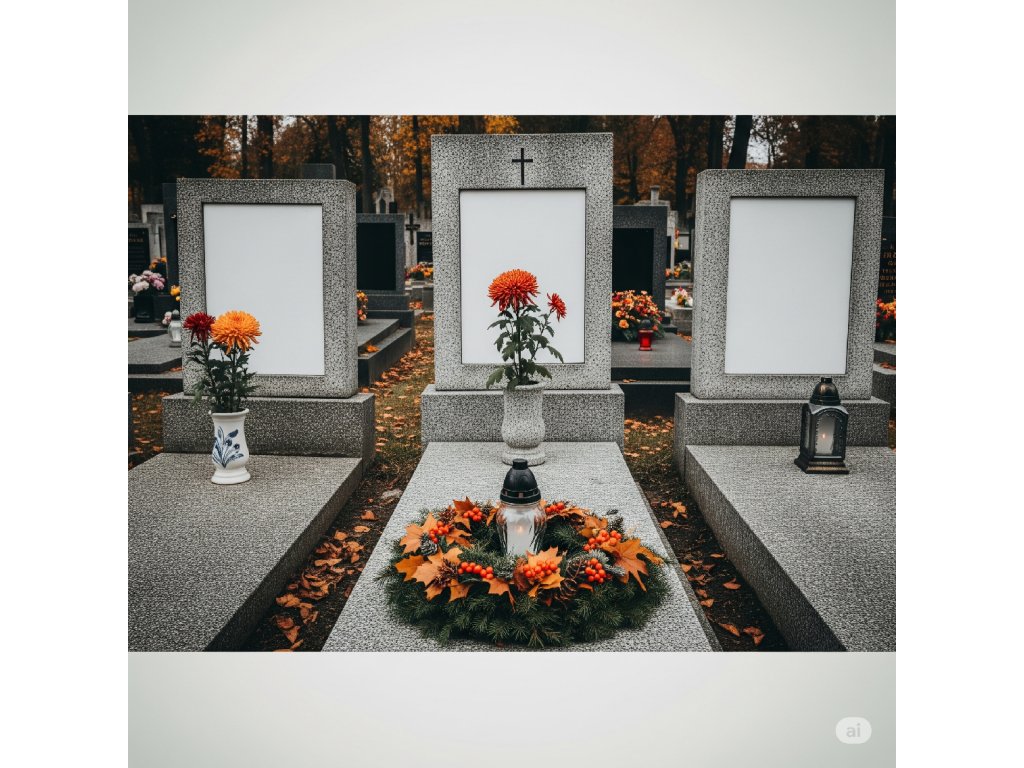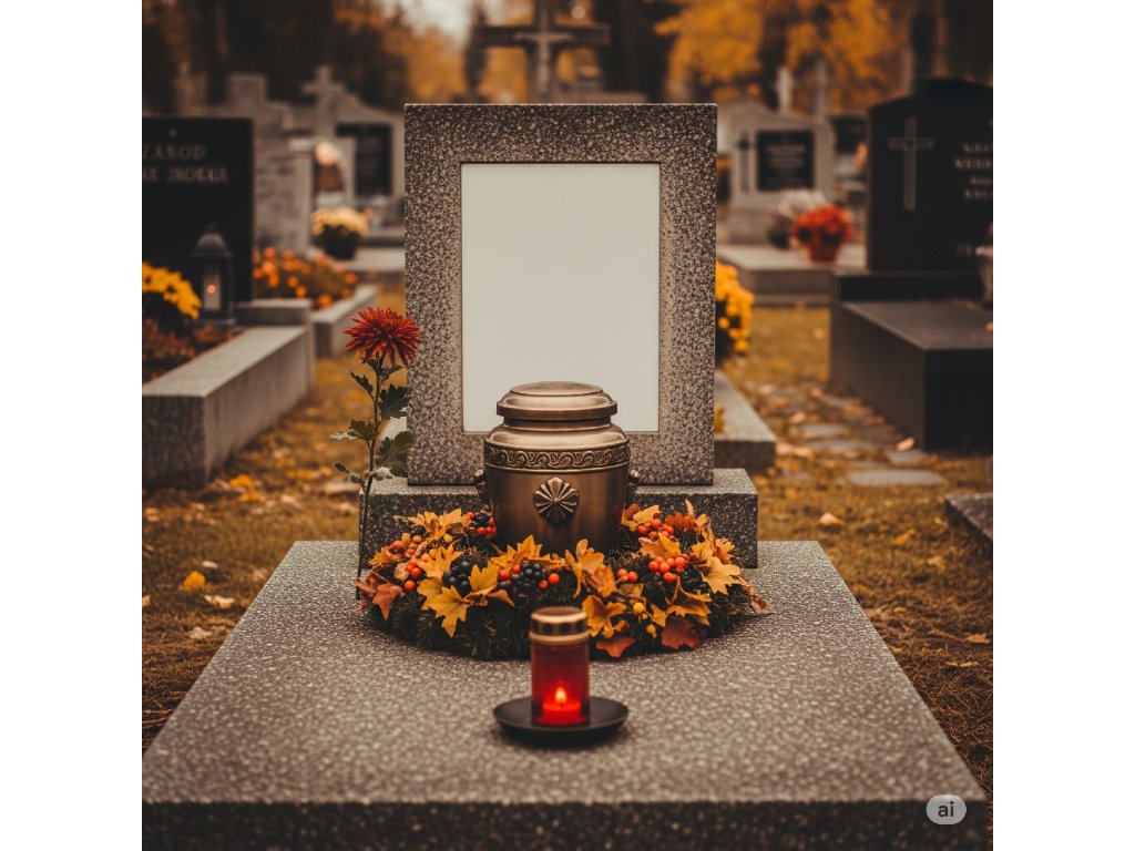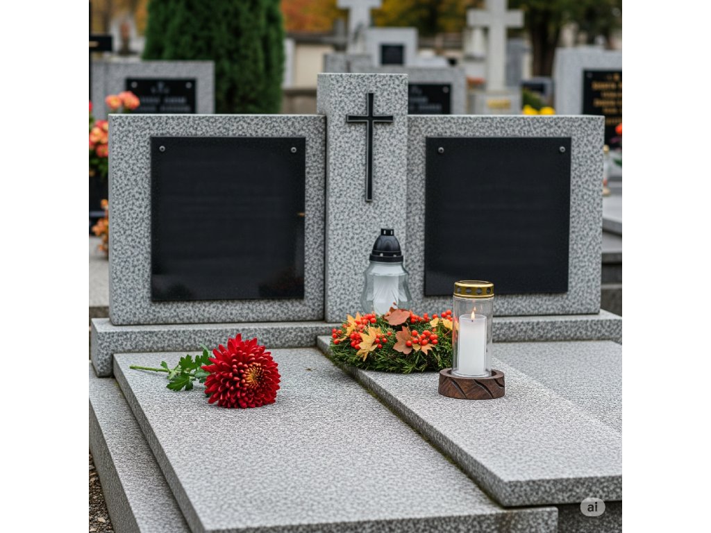 Péče kombinuje šetrné čištění náhrobku a okolí hrobu s decentní dušičkovou výzdobou, která odpovídá významu tohoto dne a zůstává vkusná i po jeho skončení.