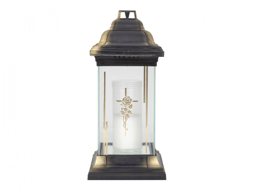Lampa hřbitovní KŘÍŽ RŮŽE skleněná 115g 14x14x31cm